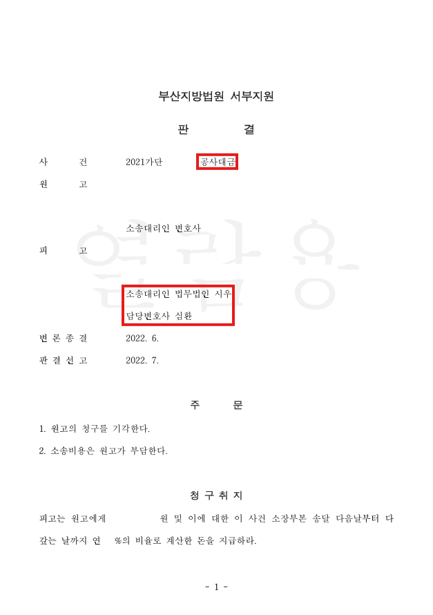 #공사대금#부산공사대금변호사#부산민사변호사#심환변호사#법무법인시우부산